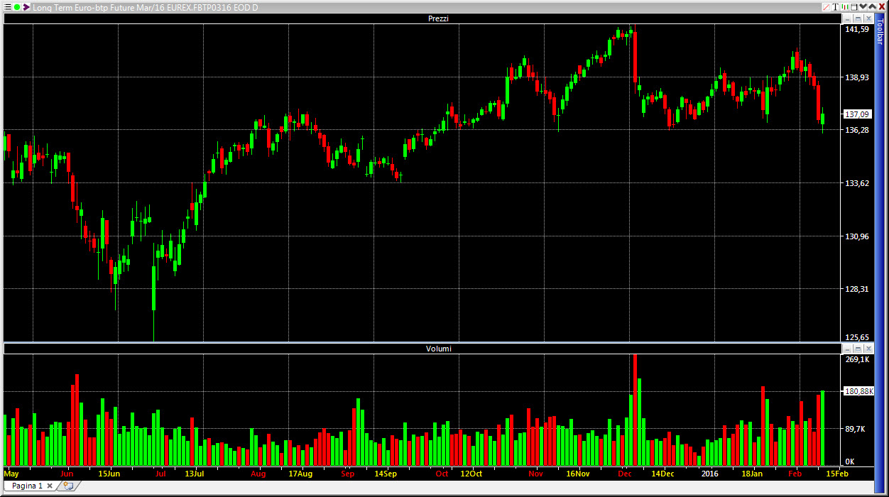 Se guardiamo il BTP Futures, vediamo sì una correzione, ma di fatto siamo sui livelli di novembre 2015, sopra 136,50 quando lo spread viaggiava, nientemeno, che in area 100 bps.