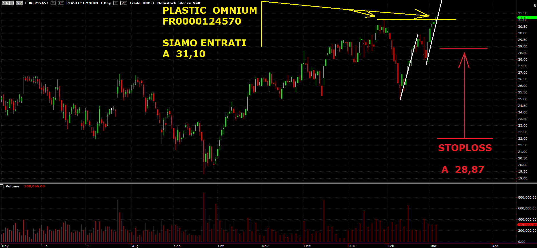Da segnalare l’entrata in acquisto effettuata venerdi scorso, sul titolo francese: