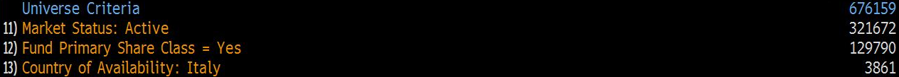 Per la selezione dei fondi più performanti siamo partiti filtrando dall’universo di tutti gli Hedge Funds listati (676'159) i fondi attualmente attivi (321'672) ed aperti al pubblico (129'790). (Fonte: Bloomberg)