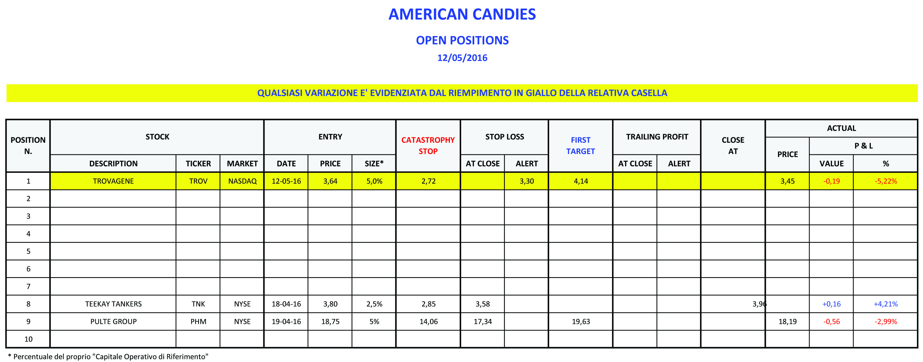 di seguito la situazione aggiornata dopo l’entrata sul titolo Trovagene