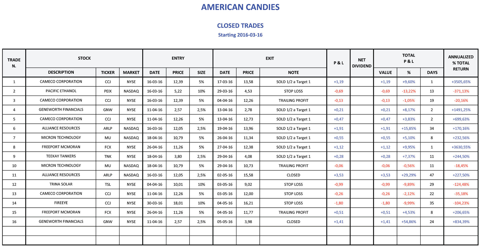 Area commenti in American Candies - Stop Loss e Catastrophy Stop