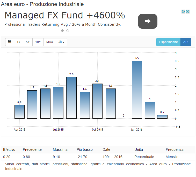 I dati sulla produzione industriale non raccontano il bel film che ci raccontano quotidianamente i telegiornali nazionali. Nel grafico sotto potete vedere l'andamento mensile della produzione industriale dell'intera area Euro nel primo trimestre di quest'anno.