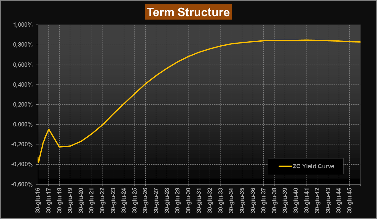La variazione più significativa si è avuta sulla curva dei rendimenti (ZC Yield Curve), che ha visto una contrazione dei rendimenti nell’ordine di quasi 20 bps sulle scadenze a lunga, quasi a scommettere su ulteriori stimoli monetari, per scongiurare l’implosione dell’Euro. Ad essere cattivi (o realisti?...), tutto questo giova anche alle casse delle banche europee devastate, poiché come sappiamo sono piene zeppe di titoli Governativi.