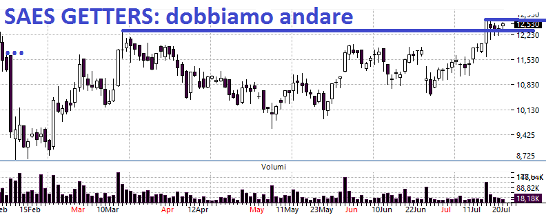 SAES GETTERS: buy ufficiale 12.66. Lo avevamo detto e non possiamo esimerci. Dobbiamo andare. Stop loss 11.97