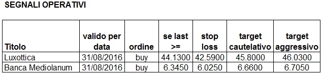 Segnali operativi per domani aggiornati: