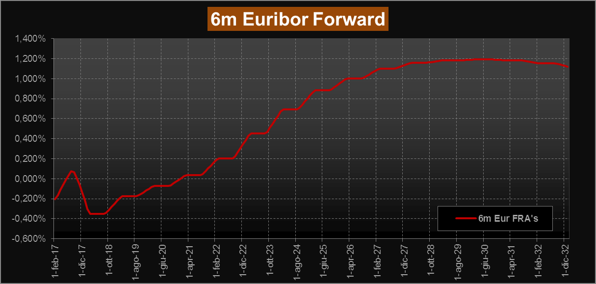 Stessa immobilità anche sui forward su Euribor 6 mesi, impliciti nella curva ZC Yield Curve, a conferma che il sell-off sui bond non pare ancora imminente.