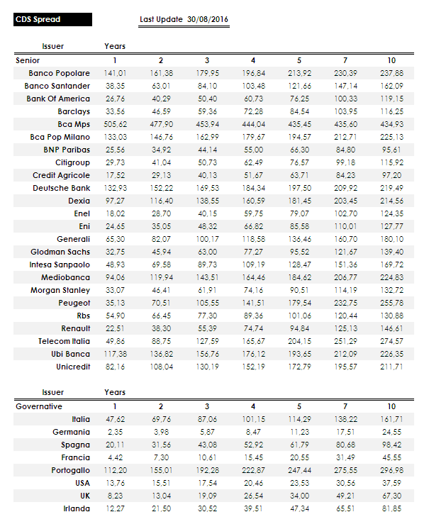 Immobili anche i CDS, come vediamo dalla tabella qui sotto.