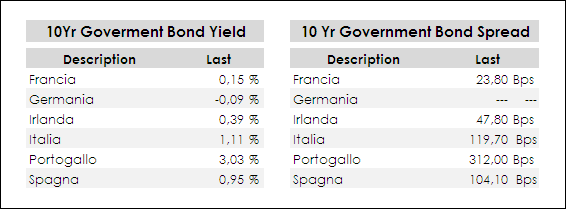 E ad ulteriore conferma della stabilità, anche i rendimenti dei benchmark decennali, così come gli spread vs Bund, come si vede dalla tabella sotto, si mantengono sempre sugli stessi livelli.