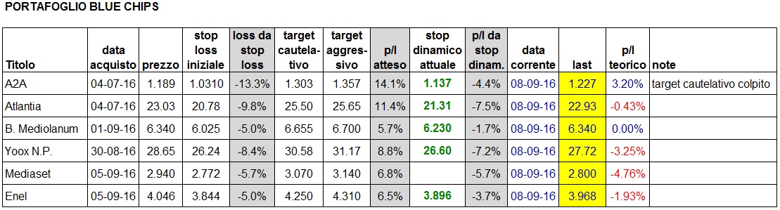 Dei titoli in portafoglio al momento l'unico che mi piace poco è Mediaset. A2A e Atantia hanno fatto correzioni tutto sommato modeste. Gli altri hanno rimbalzato nel pomeriggio e domani dovrebbero continuare a rimbalzare.