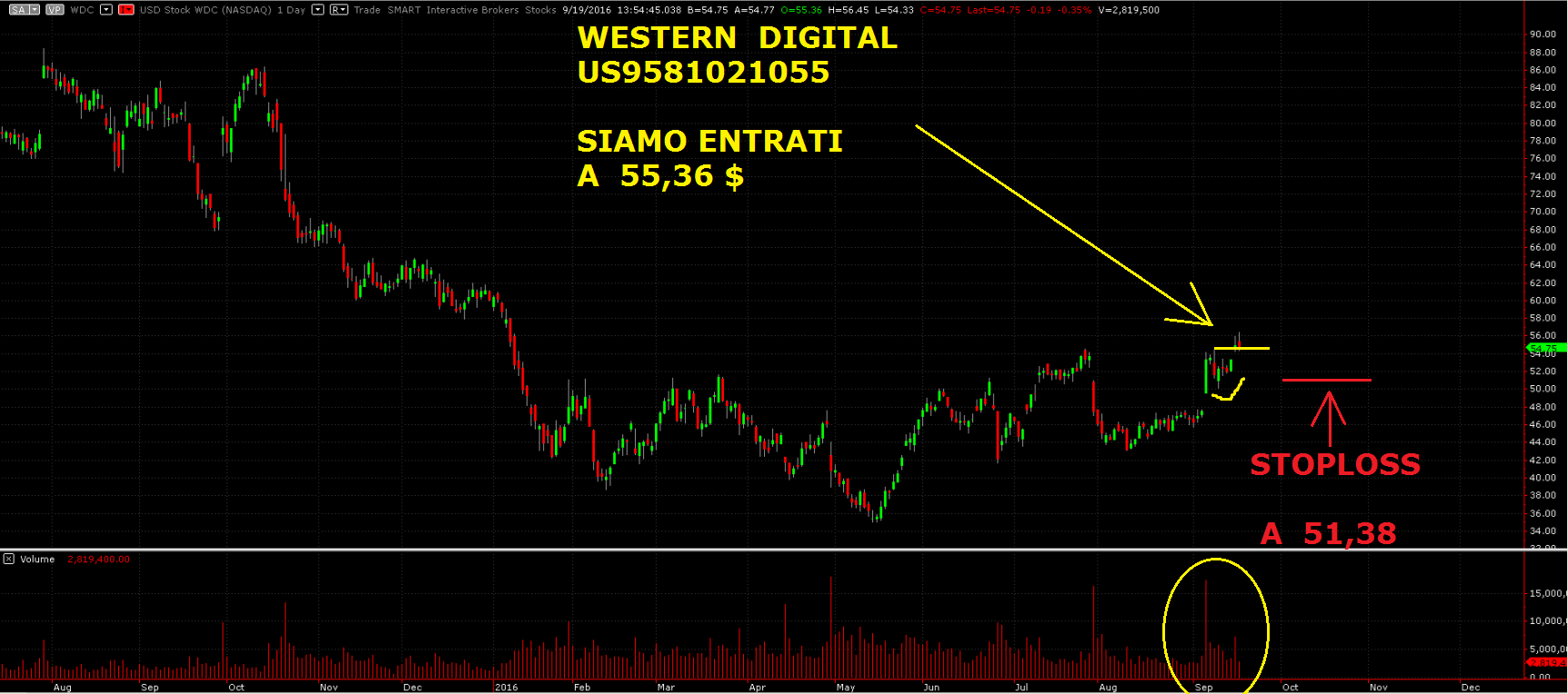 - WESTERN DIGITAL (US9581021055) A 55,36 $ in leggero slippage.