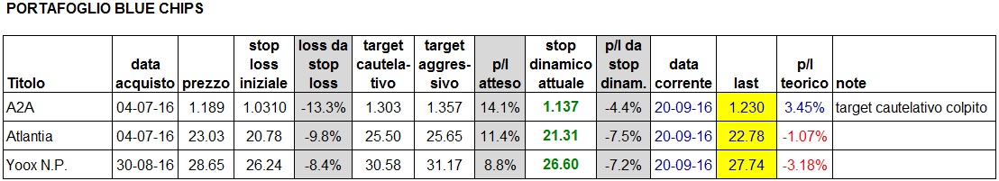 Portafoglio aggiornato al close di oggi: