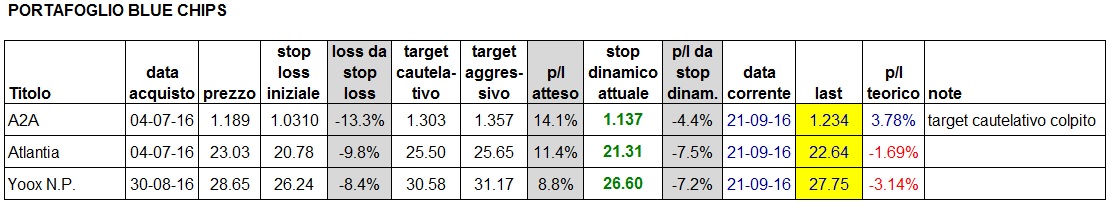 Situazione aggiornata al close di oggi: