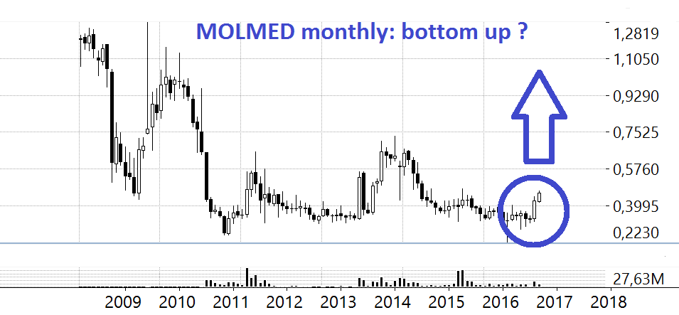 MOLMED: leggi Molmed e pronunci cancro: società biotecnologie che studia cure antitumorali. Il bilancio è inguardabile come tutte le scommesse scientifiche. Volumi e controvalori bassissimi. Però il bottom sembra cosa fatta.