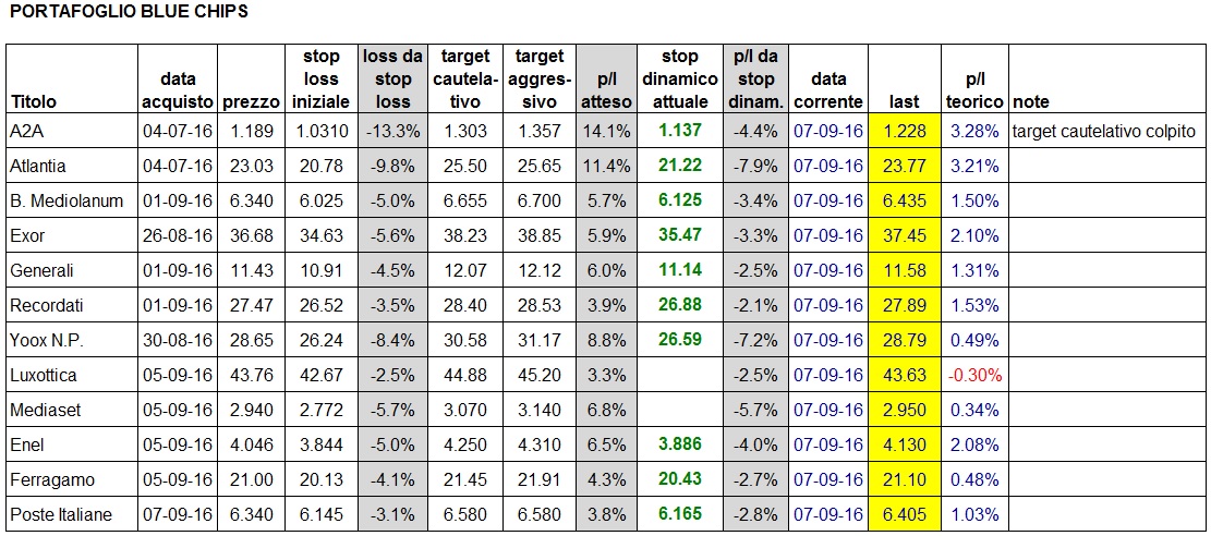 Portafoglio aggiornato al close di oggi: