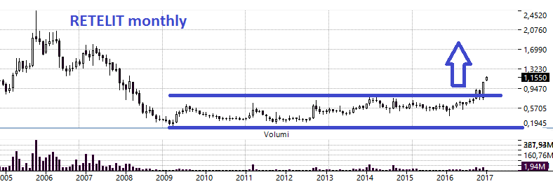 RETELIT: sta uscendo da un lungo movimento orizzontale di congestione che sa di bottom storico. E' la passione di un nostro collaboratore e non voglio togliere il mestiere a nessuno ma il titolo è veramente interessante.