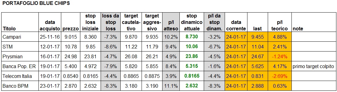 Portafoglio aggiornato alla chiusura di oggi: