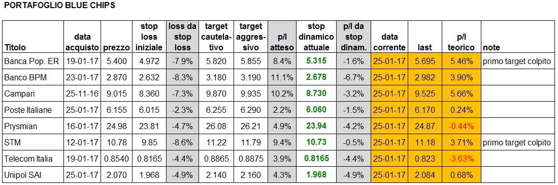ancora una giornata di alti e bassi sul nostro mercato, forte fin quasi alla fine e poi debole proprio nel finale. Alcuni dei titoli in portafoglio si sono comportati bene oggi e si comincia a intravedere qualche target all'orizzonte. Andiamo per gradi.