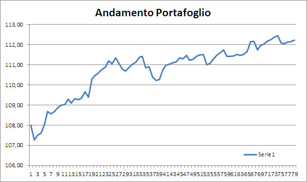 Aggiornamento del nostro portafoglio, a mercati aperti: situazione poco variata rispetto al nostro ultimo aggiornamento, salvo per un lieve restringimento dei tassi impliciti. Il portafoglio ne beneficia subito e si porta ai prezzi attuali di mercato ad un NAV pari a 112,22 dai 112,16 della scorsa rilevazione.