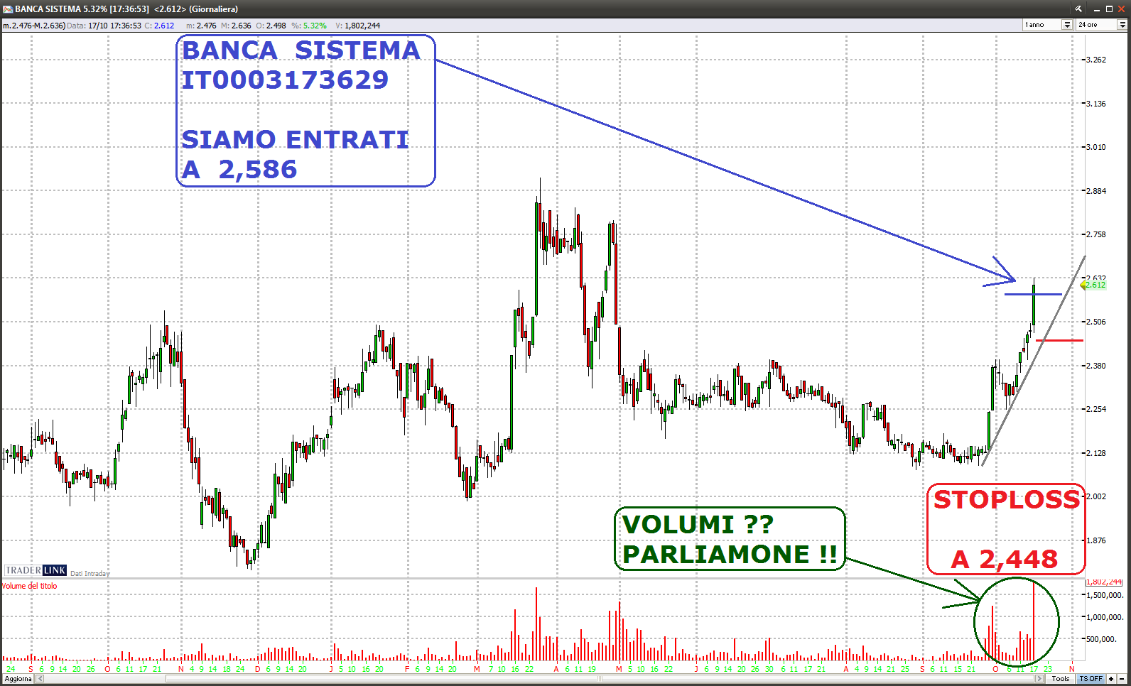 - BANCA SISTEMA (IT0003173629) A 2,586.
