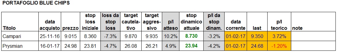 Portafoglio aggiornato alla chiusura di oggi: