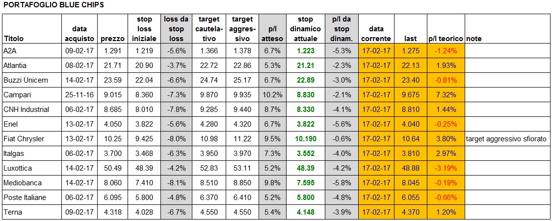 Portafoglio aggiornato alla chiusura di venerdì 17/2: