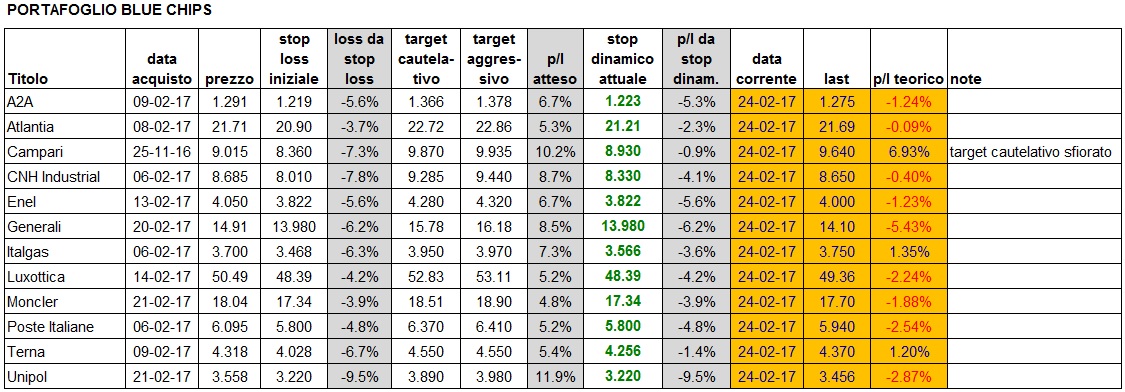 Portafoglio aggiornato alla chiusura di venerdì: