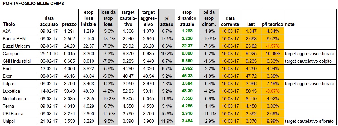 Portafoglio aggiornato alla chiusura di oggi: