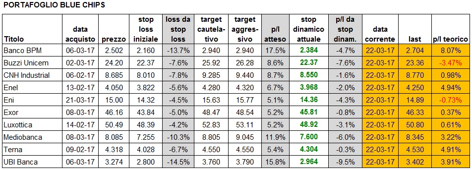 Portafoglio aggiornato alla chiusura di oggi: