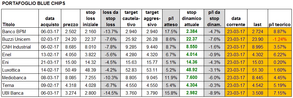 Portafoglio aggiornato alla chiusura del 23 marzo: