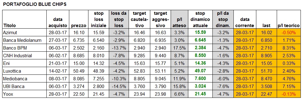 Ieri ci hanno lasciato Buzzi Unicem in stop (perdita del 7.6%) e Enel a target (profitto del 6.7%). Sono inoltre entrate in portafoglio Azimut e Yoox.