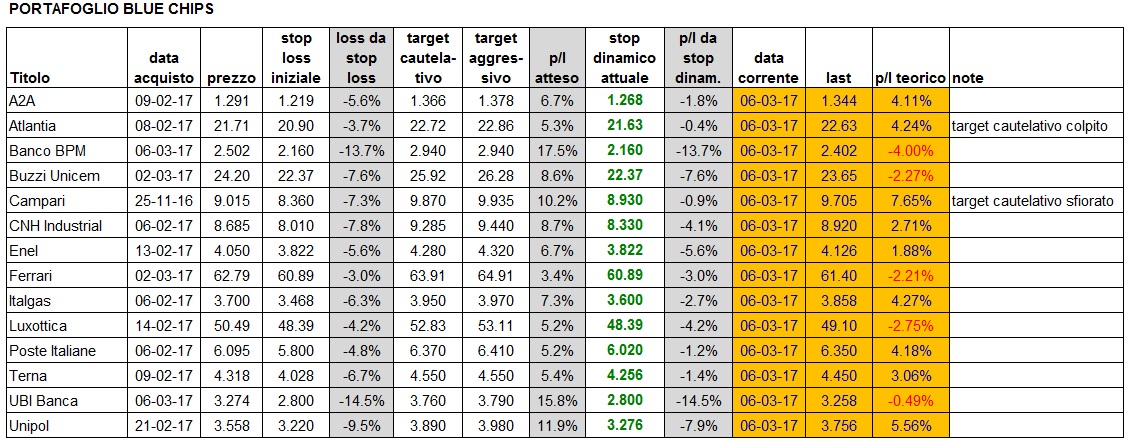 Piccola correzione oggi sull'indice FTSE Mib, ma per ora non preoccupa: non è ancora arrivato neppure al test del primo supporto di brevissimo. Personalmente mi preoccuperò soltanto al di sotto di 18931 punti, per ora lontani. La grande sorpresa di oggi è Poste Italiane, il titolo che ormai odio di più di tutti... Target vicino e sarebbe la prima volta che ci fa guadagnare da quando è iniziata questa rubrica. Vediamo come va il portafoglio alla chiusura di oggi.