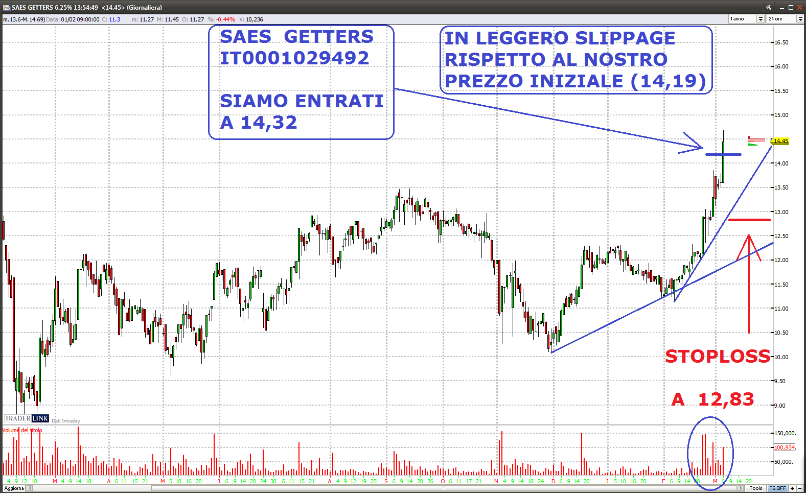 - SAES GETTERS (IT0001029492) A 14,32 (con uno slippage del 1% ca.)