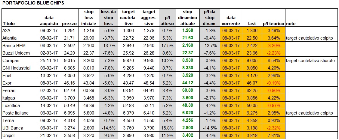 Portafoglio blue chips aggiornato alla chiusura odierna: