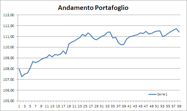 Il nostro portafoglio ridimensiona lievemente la performance registrata con il nuovo massimo storico segnato a metà aprile a 111,74 di NAV, portandosi oggi a 111,42. Il grosso di questo movimento di pullback è da imputarsi ovviamente al rifiatare dell’Euro contro le altre valute che abbiamo in portafoglio, cosa che tuttavia non preoccupa poiché riteniamo siano tutti movimenti che rientrano nella logica delle cose.