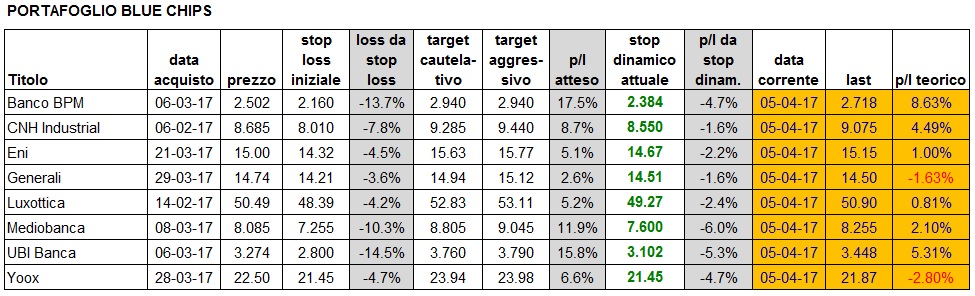Per il resto non si vedono situazioni rilevanti. Portafoglio aggiornato alla chiusura del 5 aprile: