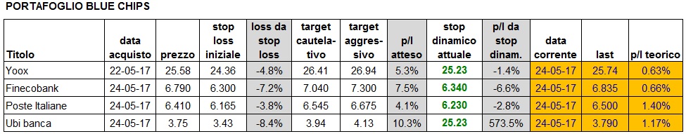 Portafoglio aggiornato alla chiusura del 24 maggio: