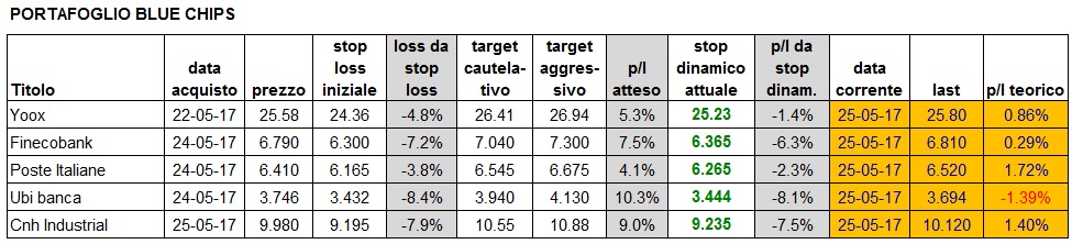 Portafoglio aggiornato alla chiusura del 25 maggio: