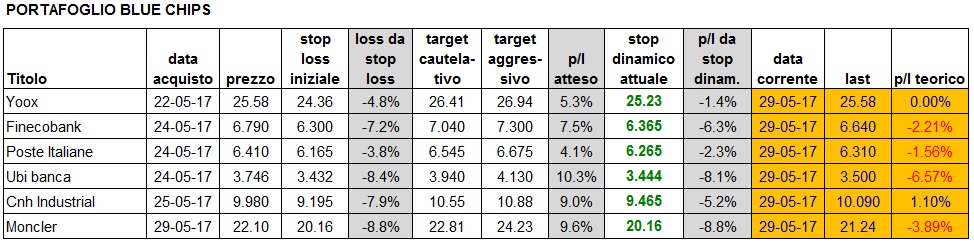 Molto male Ubi Banca, peggior titolo del portafoglio, ormai privo di supporti. Lo stop dinamico è molto vicino, penso che domani scatterà.