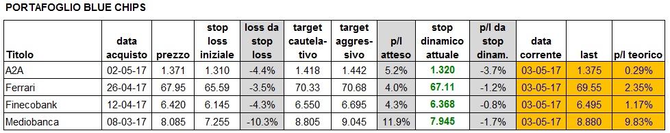 Portafoglio aggiornato alla chiusura del 3 maggio: