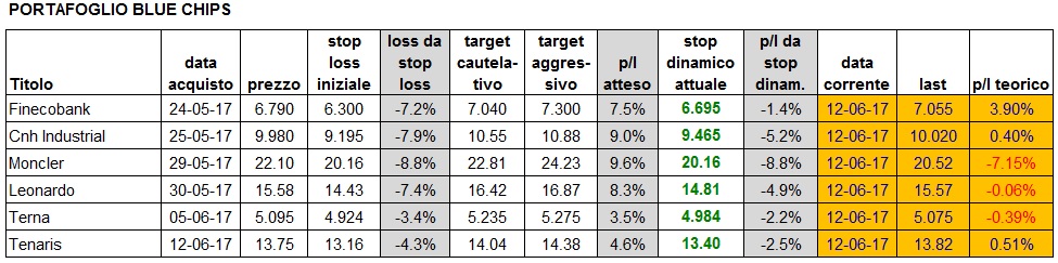 Portafoglio aggiornato alla chiusura di lunedì 10/6: