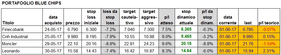 Portafoglio aggiornato alla chiusura del 1/6: