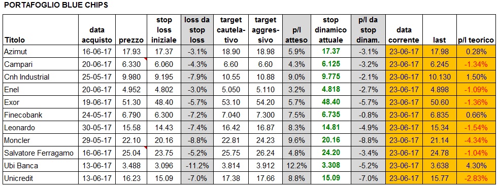 Portafoglio aggiornato alla chiusura di venerdì 23/6: