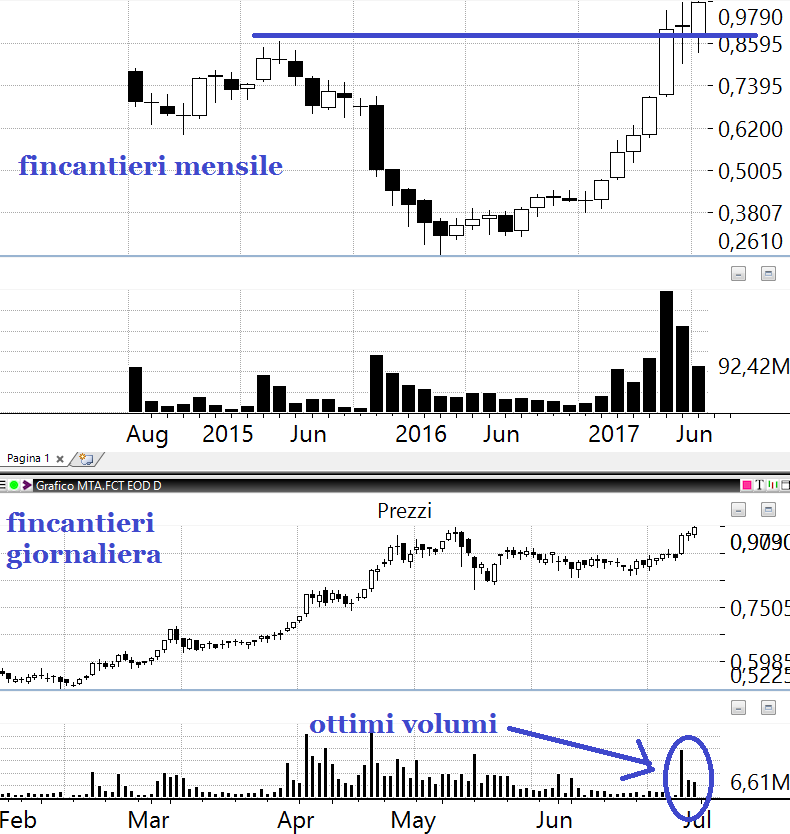 L’unico titolo che mi sento di raccomandare è Fincantieri che è sopra i massimi del collocamento, ha ottimi volumi ed è in fase di breakout. Appena storna entriamo.