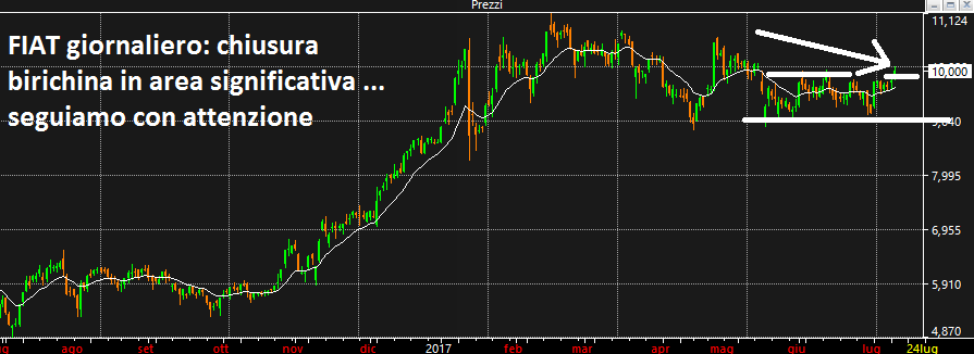 Interessante chiusura di FCA che chiude a ridosso della resistenza del box che sta disegnando. Se prosegue è da prendere, ovviamente con un buy ufficiale.