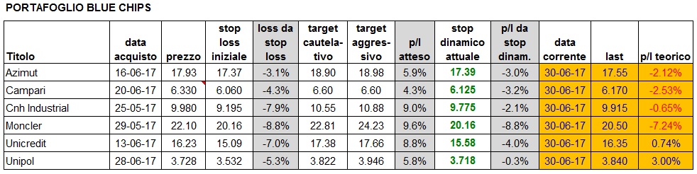 Portafoglio aggiornato alla chiusura di venerdì 30/06: