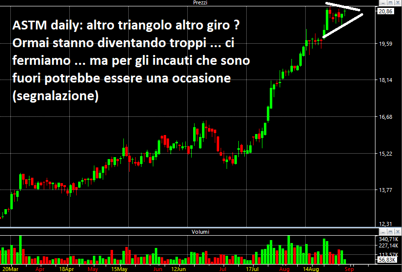 Oggi non c'è molto da dire, segnalo solo ASTM che sarebbe da prendere di nuovo con bella congestione. Noi però passiamo, lasciamo a qualche incauto che non ha finora comprato.
