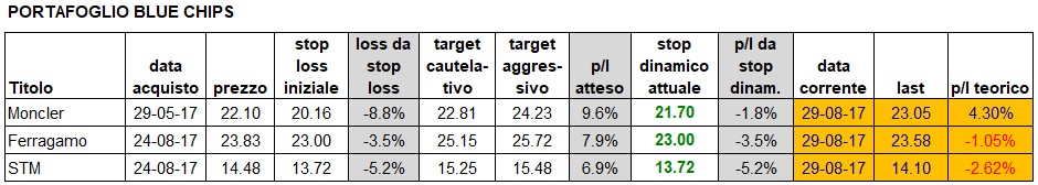 Portafoglio aggiornato alla chiusura del 29/8: