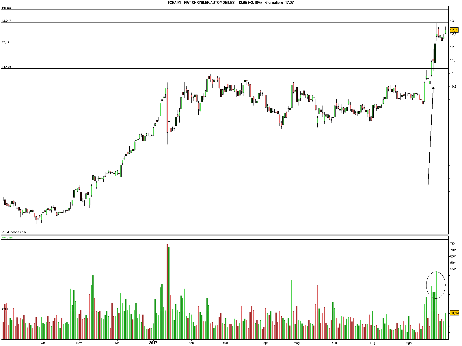 Vacanza o on vacanza, mentre il trader cerca di godere dell’ultimo sole estivo, il mercato, per nulla propenso a rifiatare, mette davanti ad un dato importante gli osservatori della tecnica e gli innamorati aziendali, coloro i quali, nonostante tanti matrimoni con titoli, naufragati nel peggiore dei modi, continuano sull’onda dell’entusiasmo del momento a domandare imperterriti pareri come il seguente:” ma secondo te, Fiat quanto vale?”.