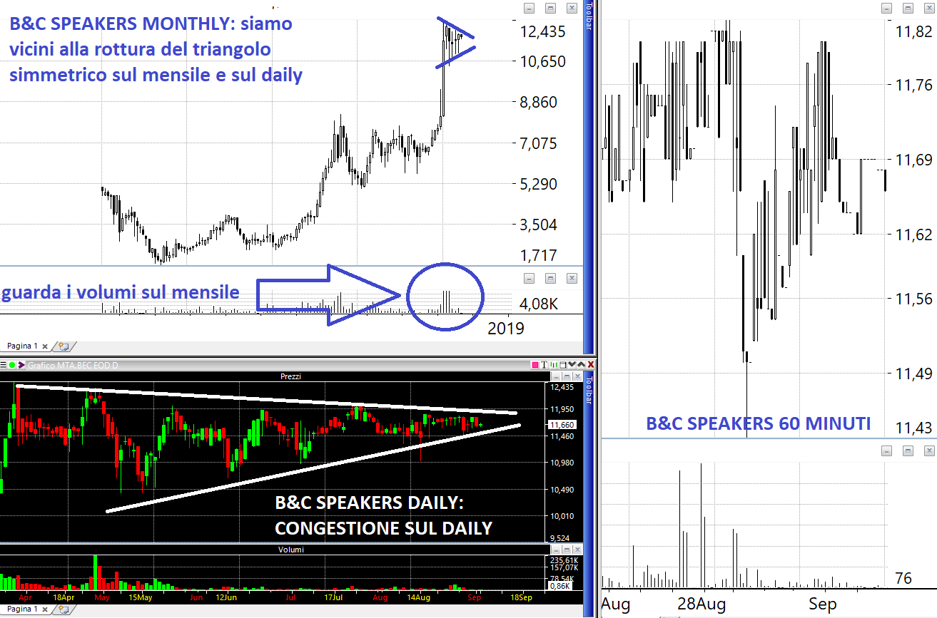 B&C SPEAKERS: è uno dei “nostri” titoli non tanto per il settore di attività (componenti per casse acustiche) ma in considerazione di un ROE che dal 2014 al 2016 è stato rispettivamente del 26%, 27,50%, 27,96% e di un ROI che ha fischiato del 33,86%, del 38,58%, del 57,35% (mostruoso !). L’azione secondo una analisi DCF su dati annuali è ormai sopravalutata del 20% rispetto al fair price, ma sappiamo che è proprio quando il momentum picchia duro che il fair price va a farsi benedire ed è un bene che vada a farsi benedire perché i cassettisti vendono e gli speculatori comprano.