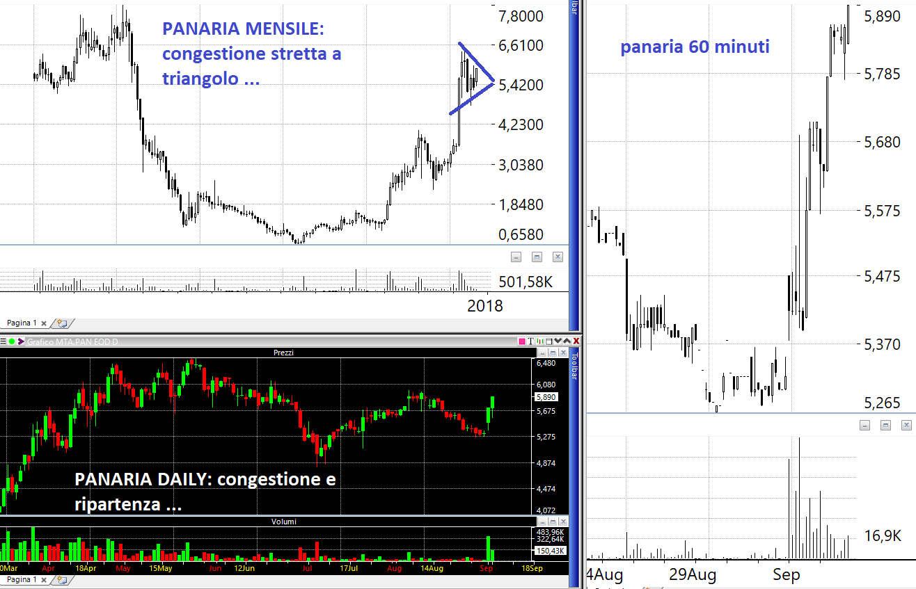 PANARIA GROUP: nostra vecchia conoscenza che stiamo cavalcando da tempi insospettabili con una pioggia di segnalazioni. Se guardate sul mensile non è cambiato nulla, se guardate sul daily con i volumi che sono passati sul mercato e il momentum siamo ad un punto di svolta rialzista. Basta una congestioncina di almeno 3 barre per piazzare il buy stop sul massimo. Un nuovo giro di walzer è in arrivo.